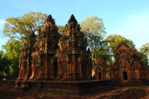 The Banteay Srei temple which we visited on the way back to Siem Reap was my favourite, of all the temples. This temple had great similarity to the south Indian temple architecture. Main shrine facing the east, a Nandi statue in front of the main shrine, Ganapathi and Sastha shrines on either sides, a room looking like the madappalli on the south side, Kerala government symbol(!!) on the main entrance arch and many other similarities.. We didn’t get to spend enough time here!