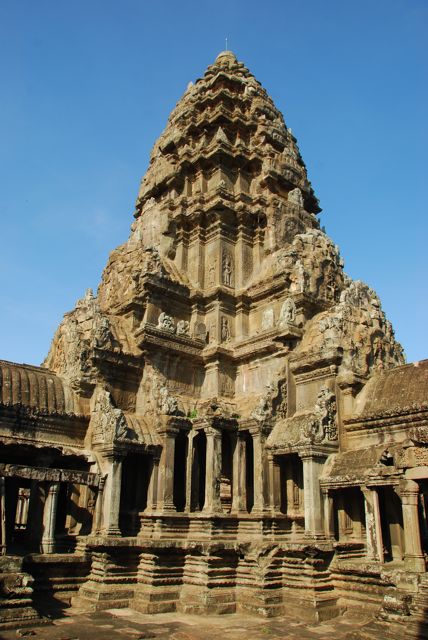 Originally a Hindu temple dedicated to the Lord Vishnu, it used to be called the Vishnuloka. The temple was built by the then King Suryavarman II (12th century AD). After the religious revolution in the 13th century, king Jayavarman VII converted the temple to a Buddhist monastery and named it the Angkor Wat. The architecture and construction of this place was similar to south indian temples in many aspects. The entry to the main shrine is prohibited. I was standing near the steps to the main shrine, when a security asked.. Sir, you want to enter the main shrine? I said yeah, sure!! Then came his offer “ok.. it costs 10 dollars (!!)”. Later i found out that we were actually paying off a police guard to see the main shrine were visitors access was prohibited then!! We spent rest of the day visiting some more (ruined) temples and monuments.