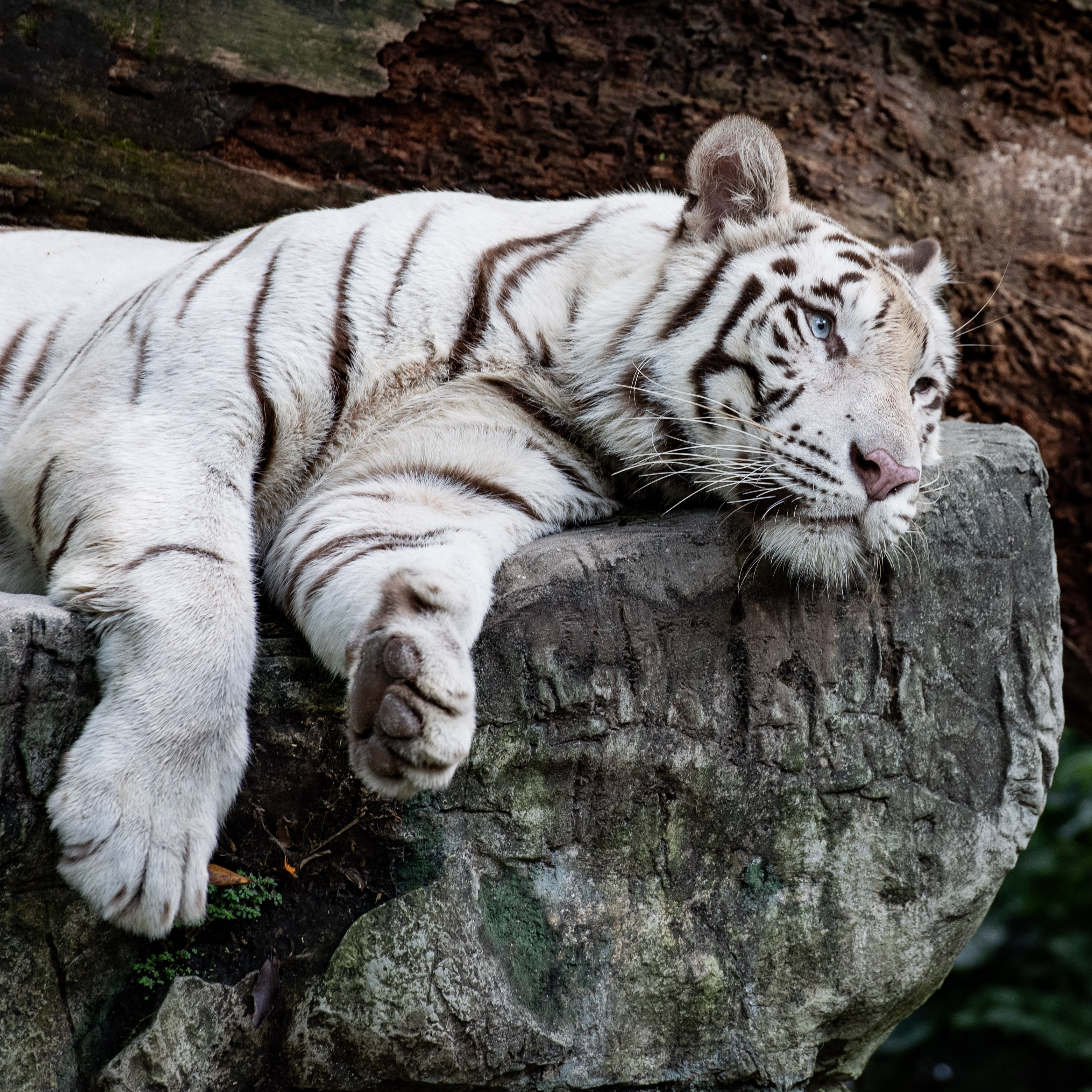 It was another hot and humid day in January. We reached the zoo just after lunch and weren’t motivated enough to do the usual routine. After walking a bit, we reached the White Tiger exhibit. I hoped to get few clicks of the beautiful and ferocious animal (Pasha) in front of me. But, the tiger appeared to be lazier than me. He was planning for an afternoon nap. That was not the posture that I wanted to capture. I was hoping for a majestic look (as in the picture below, which I took after waiting some time).